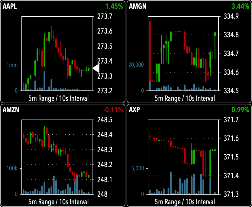 Lay out the monitor in many ways from tiles that change color on movements, or fully scrollable tables or live charts