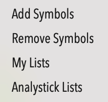 Analystick Lists: presents a selection of lists prepopulated by Analystick which you can load. As soon as you load it, it will be saved in your lists and you can modify it as you please