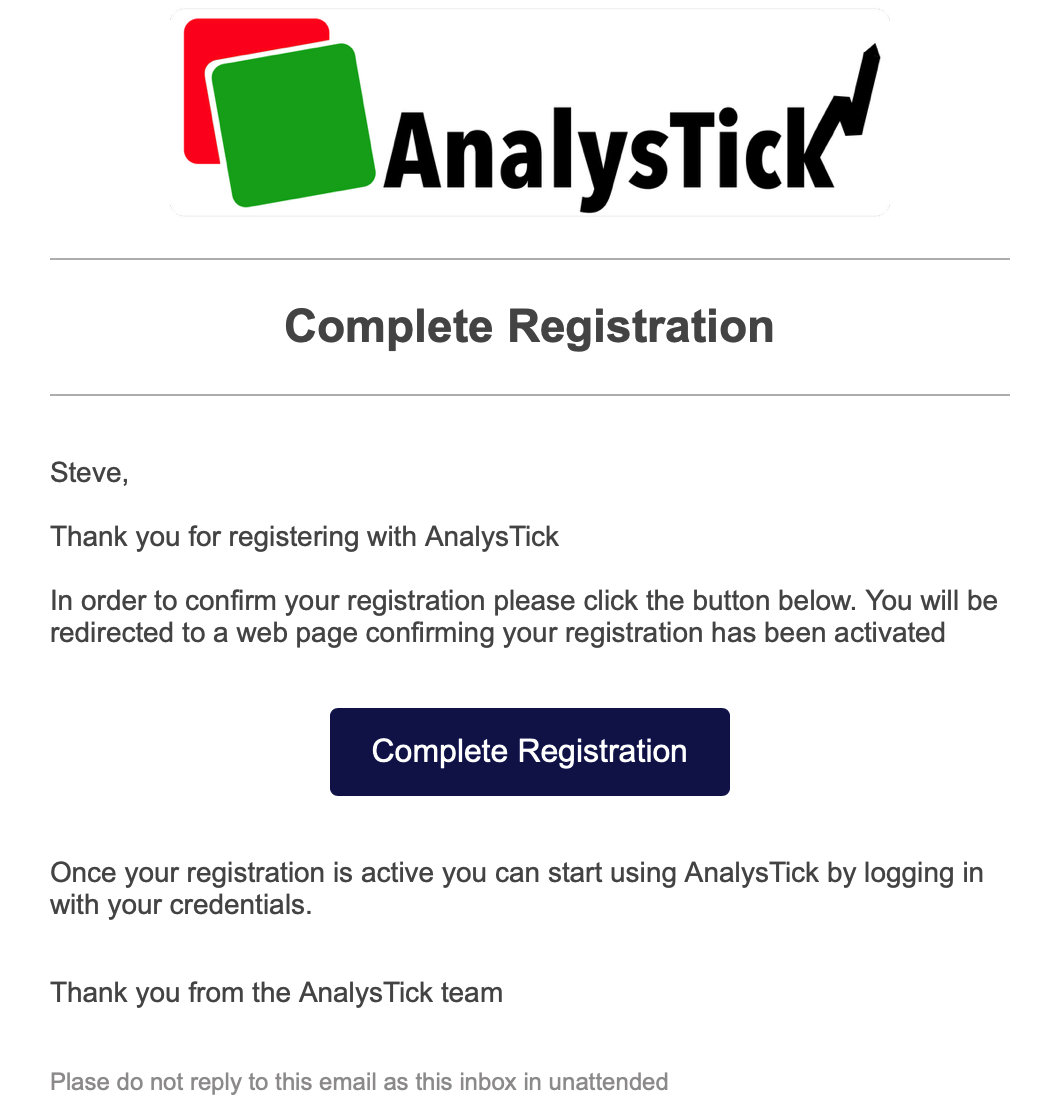 You will receive an email from registration@mail.analystick.com. Please check your spam folder in case you don't receive it