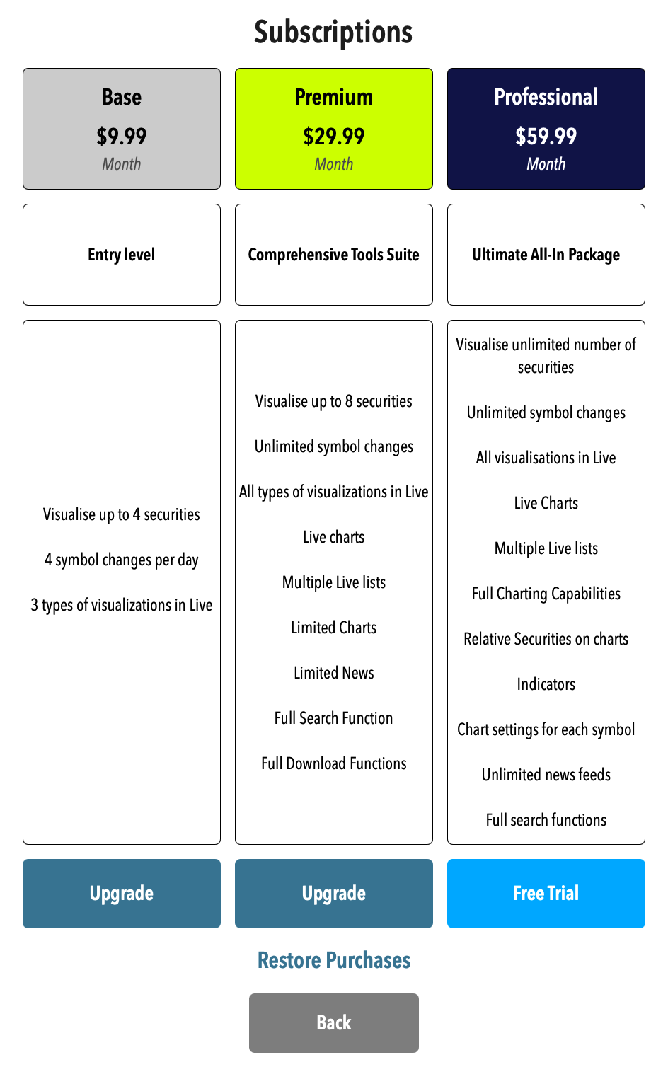 You can choose your subscription plan in the Settings Section. Click the Manage button on the Subscription line and you will see the three subscription plans on offer