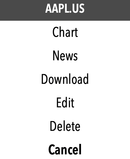 Clicking on a tile or on a symbol in table mode brings up the Edit Symbols Menu which allows you to modify the single security selected
