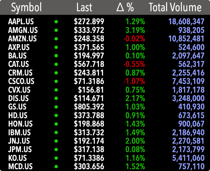 Create your list (or lists) of securities and have at a glance all the real time pricing information you choose