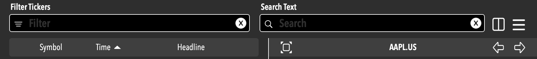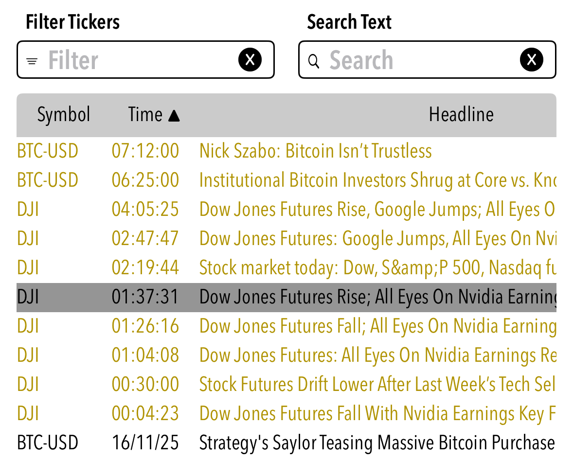 Searchable news feed for all your selected securities