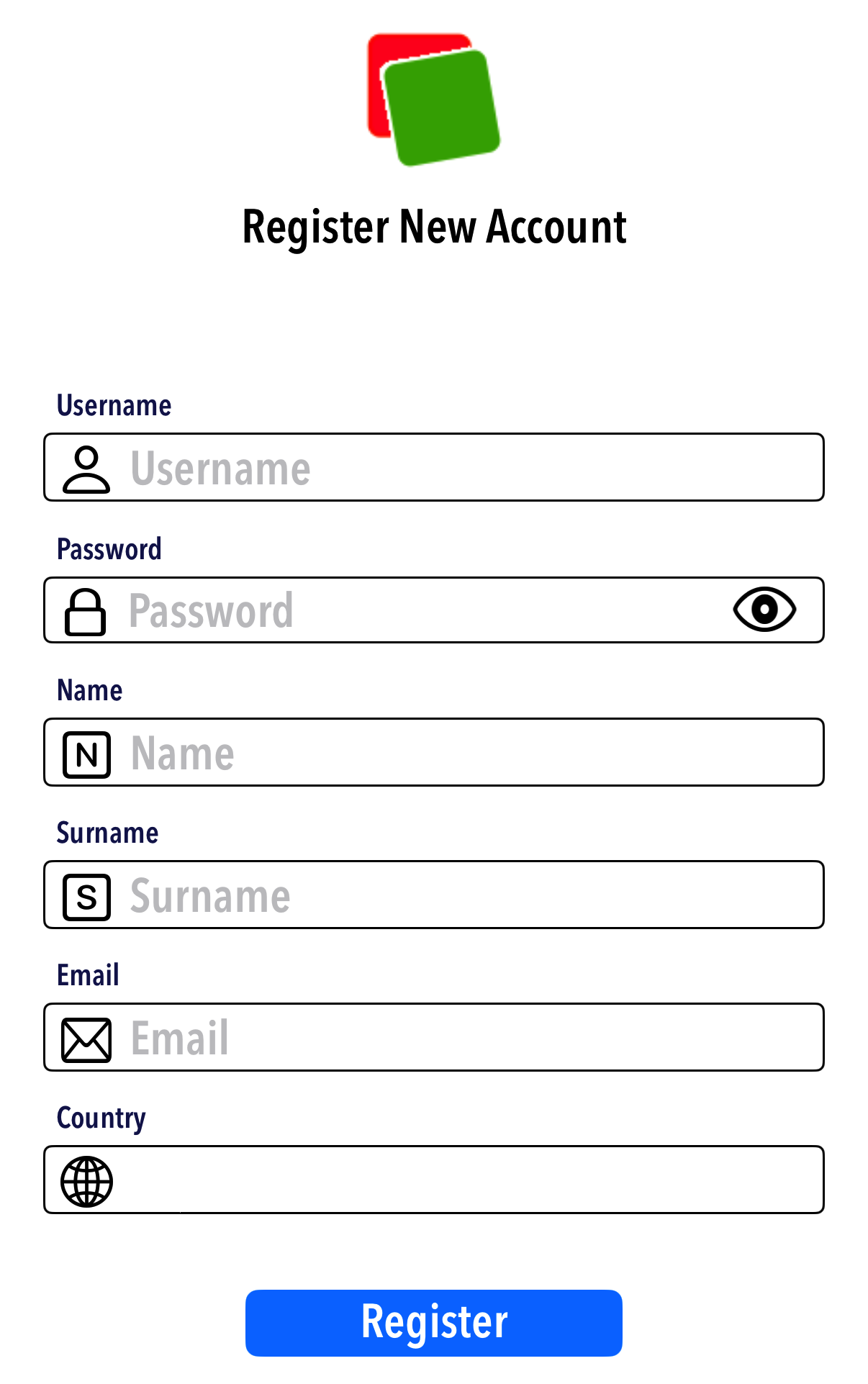 Download the app for your device and launch it. You will be presented with the log in page. Click on the Register Button